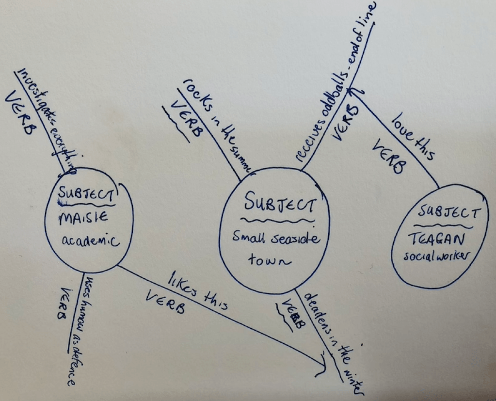 Now for those of you who may think ‘Yeah, yeah, I know all this – give me some challenge here!’, I offer an idea. We can use these units of analysis to get clarity on any sort of writing project – novel series, copywriting, screenplay or collection of poems: what’s the big idea carried here? Who or what are the subjects? And what are their actions?